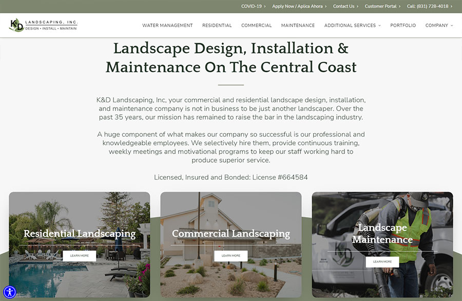 Located in central California, K&D Landscaping takes care to provide not just fabulous residential and commercial landscaping, but also holds itself to strict fire safety standards in every project. Keep your dream lawn or garden safe and beautiful with an expert team of highly trained, longstanding employees.