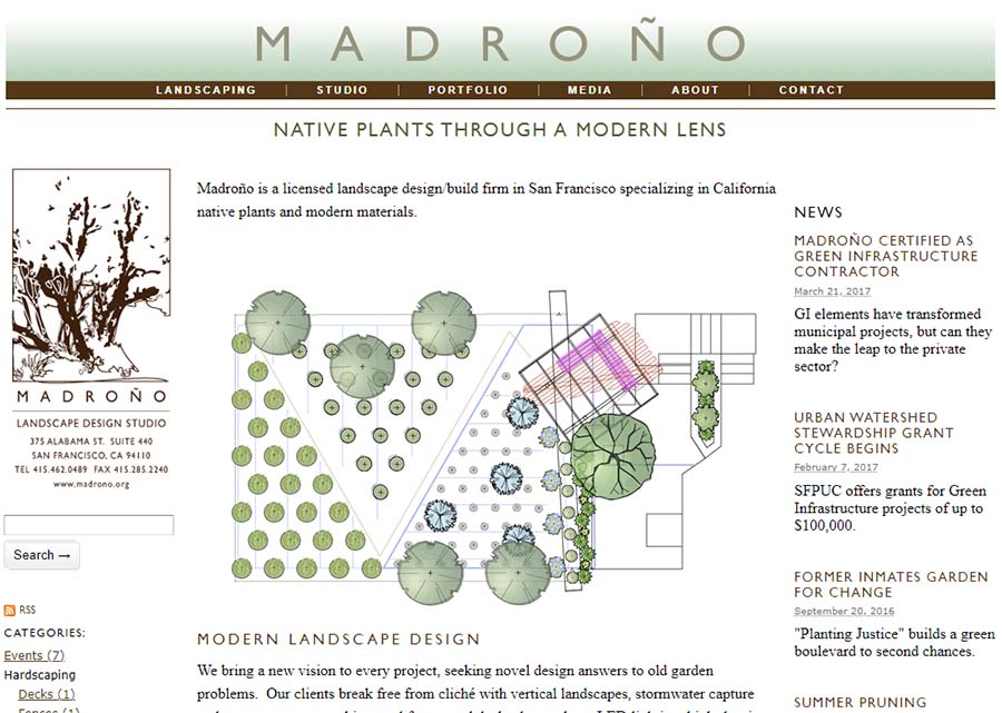 Madroño Inc. is a licensed landscape design company in San Francisco that specializes in using native plants and materials in their sustainable landscapes. From small focal pieces designed to attract bees and butterflies to large scale civic projects, walls to parks, Madrono Landscaping consistently creates beautiful and inventive landscapes with a flair for creative solutions.