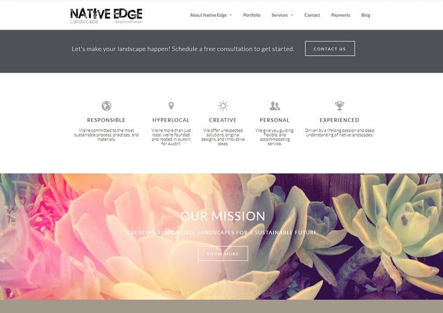 Native Edge Landscapes was grown from seed in the heart of Austin Texas. Their core beliefs center reliability, care and responsibility to their customers, community and the environment. With a policy of only using native plants and sourcing both the materials and labor as close to their own community as possible, If you want to support local, then Native Edge is the place to go.