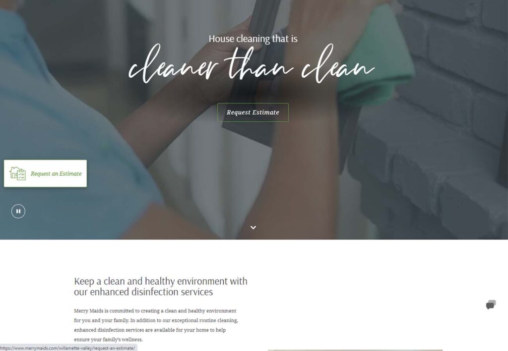 Merry Maids Cleaning is a great example of a site designed for a large franchise company. Because their brand spans so many individual businesses and locations, their strategy has to balance services with the shared experience of enjoying a clean home: something that’s universal no matter where in the world you are. We love the ample opportunities to request an estimate and the pleasant transition from the soft dark hero image to the clean and crisp content below.